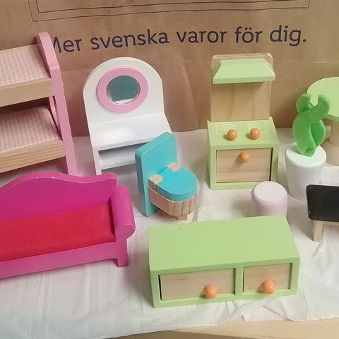 Nypris för dockskåpet är ca 400 kr (utan tillbehör), så detta är ett mycket bra paketpris.