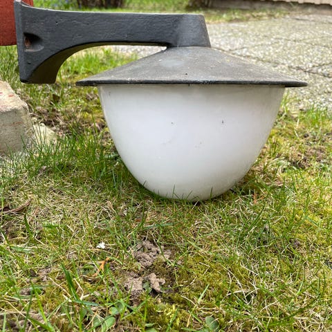 Svart vägglampa i Gjutjärn med glas. Lampan har en klassisk design med en sexkantig lampskärm och dekorativt väggfäste. Passar för utomhusbruk och ger riktat ljus.