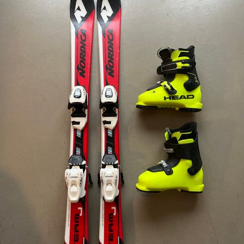 Säljer även ett par Nordica pjäxor som använts till skidorna ovan. Två justerbara spännen. Innermått 200-215 mm, yttermått sula 255mm. Vår son hade ungefär skostorlek ca 31+/-1. Visst ytslitage av kosmetisk natur men väldigt mkt liv kvar då tex sula/undersida har mycket begränsat slitage. Pris 250:-