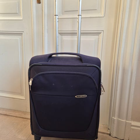 Selling a purple cabin suitcase (American Tourister), bought in 2019. Selling because I now travel with a backpack. The suitcase has clear cosmetic wear (marks/scuffs), but it works as it should: wheels and zips are fine. Nothing broken.