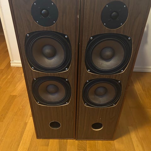Säljer ett par eleganta Pioneer golvhögtalare, modell S-ST606 (Surround L/R) i svart utförande; passar perfekt för hemmabio eller stereoanläggning.