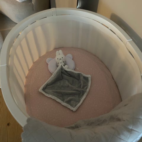 Underbar vit Stokke Sleepi crib + tillbehör!