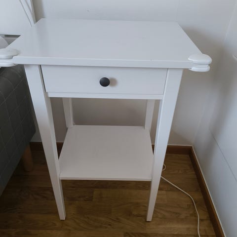 Ikea Malm sängbord. Träfärgad. Fläckar förekommer i översta lådan (se bild 2).