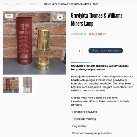 Två stycken gruvlyktor / gruvlampor i fint skick från Lamp & Limelight Company Colliery no 8721 säljes tillsammans för 1800 kr.