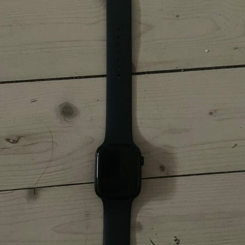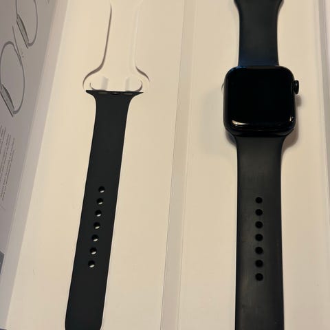 Apple Watch SE 2 44mm gps/e-sim med svart sportarmband, storlek M/L. Batterihälsa med maximal kapacitet på 100%.