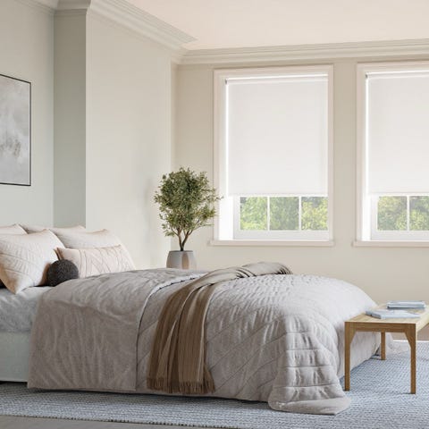 Måttbeställda vita rullgardiner.