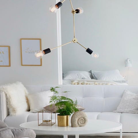 Snygg och modern 3-armad taklampa från Jotex i mässing.