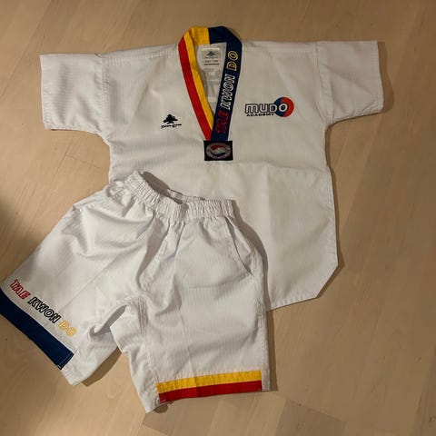 Säljer en teakwondo dräkt I stl 130 i bra skick, se bilder