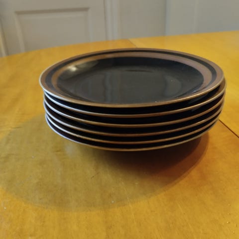 Mattallrik ur Annika-serien från Rörstrand. Design av Marianne Westman. 25 cm. Använd med synliga bruksspår. Säljs styckvis.