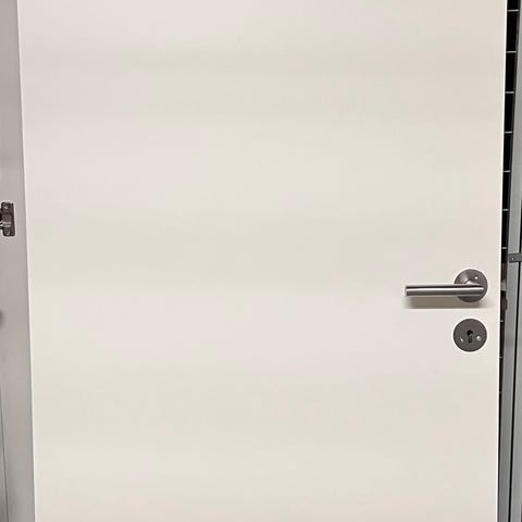 Dooria (numera Swedoor) innerdörr i vitt utförande. Dörren är av standardstorlek och har en enkel design med metallhandtag och nyckelöppning. Passar för inomhusbruk som rum- eller garderobsdörr.