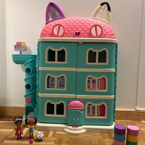 Säljer nu ett relativt oanvänt komplett Gabbys dockskåp med tillhörande figurer och möbler. Då dörren till skåpet öppnas eller då man trycker på knappen spelas seriens signaturmelodi.