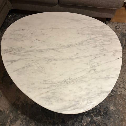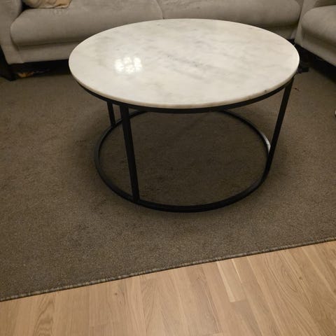 Elegant svart soffbord i svart marmor. Den kostade 5500 kr på Ellos. En del fläckar på marmorskivan men det kanske försvinner med polering. Jag vet inte. Den är fortfarande väldigt elegant och fin!