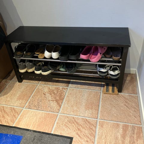 En sittbänk skohylla måtten längd 100 höjd 50 djup 32.