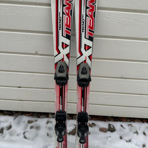 Mycket fina Rossignol Powah skidor med en längd på 100 cm och sdc 108/67/94 mm. Skidorna är handgjorda i Frankrike och har en radie på 6 meter. Färgen är svart och blå. Skidorna är utrustade med bindningar och stavar på 85 cm (33 tum) ingår.