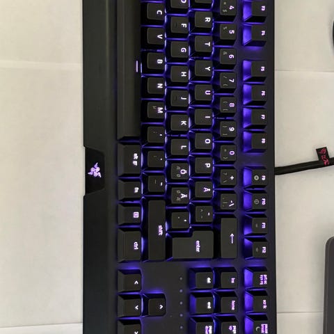 Razer BlackWidow Spel-tangentbord med RGB-bakgrundsbelysning i varfri färg. Tangentbordet är designat för spel och har en kompakt layout med mekaniska knappar.