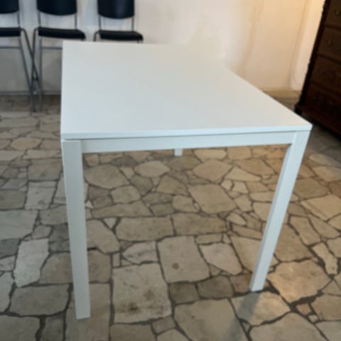 Matbord ifrån Mio, finns tecken på användning men inget märkvärdigt, anledningen till att det inte finns originalbilden är att bordet står dumt till just nu pga flytt. Är man genuint intresserad går det bra att komma och kolla, information om bordet ses på bilderna