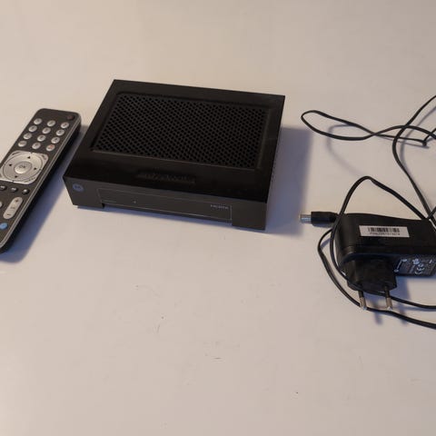 MXQ PRO 4K TV-box med stöd för 4K-upplösning. Enheten har flera anslutningar inklusive HDMI, USB-portar, hörlursuttag och nätverksport. Levereras med fjärrkontroll och strömadapter.