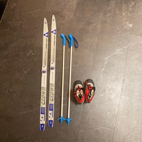 Vallningsfria längdskidor med pjäxor salomon samt stavar.