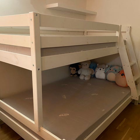 Paniksäljer våningssäng säljes ASAP pga flytt. Ej nedmonterad. Minns ej vart jag köpte den. Har inga direkt mått. Följer med madresser 80cm på köpet. Bara en madrass kostar drygt 1000 kr. Först till kvarn.