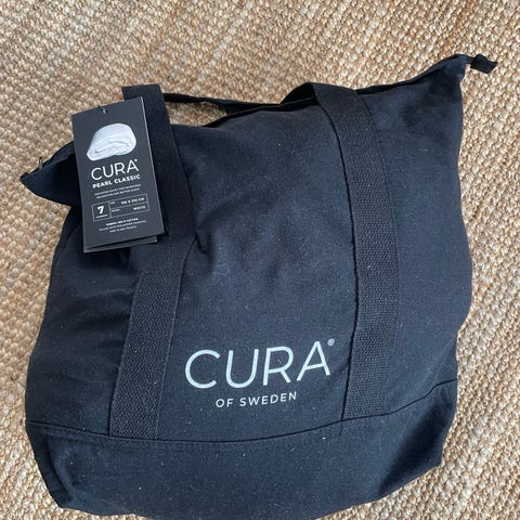Tyngdtäcke 7 kg från Cura of Sweden. Sparsamt använd. Finns även ett vitt påslakan till från Cura ( det är till för tyngdtäcken då det har band som man knyter i flera punkter runt täcket för att hålla det på plats).