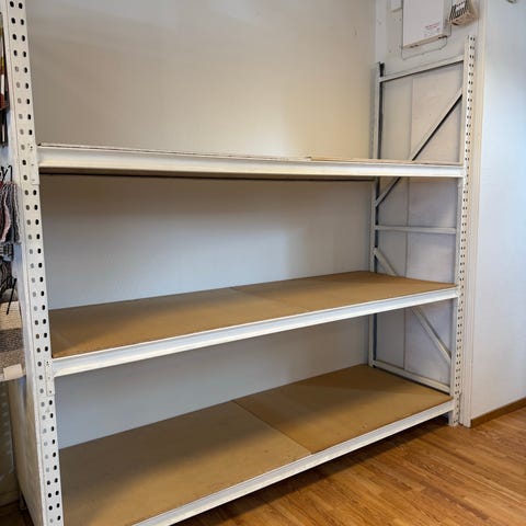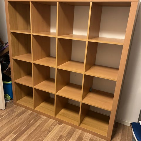 Ikeas Kallax med vita skåp. Använd sparsamt som skohylla men säljs pga avvecklig.