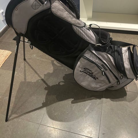 Titleist Stadry 15 golfbag i svart färg. Golfbagen är utrustad med flera fack för förvaring och har ett slitstarkt material anpassat för golfspel. Modellen är designad för att underlätta transport av golfklubbor och tillbehör.