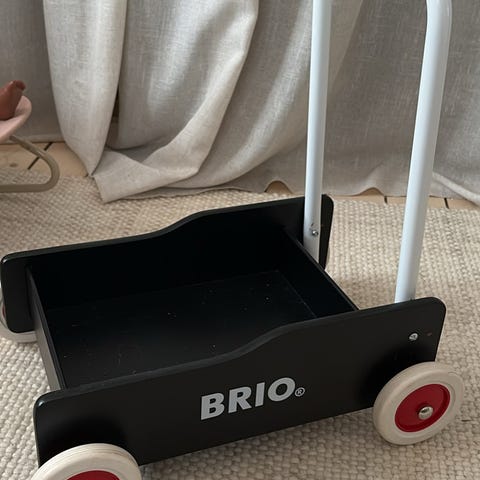 Klassisk lära gå vagn från Brio. I använt skick med några repor en lagning (se bild). Men på det stora hela fin och välfungerande. Håller för fler barn!