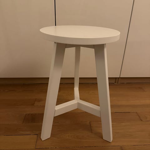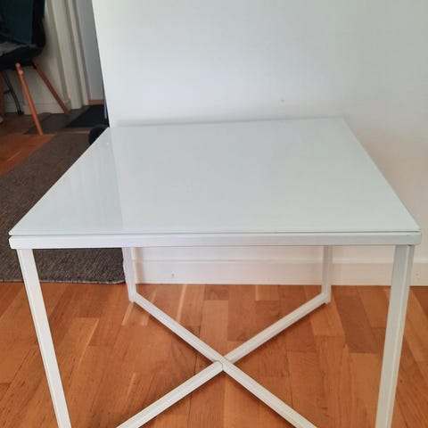 Två vita mindre bord, har använts som soffbord men kan användas som avlastningsbord. Det ena bordet är något större än det andra. Mått: