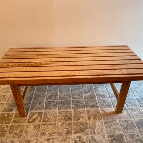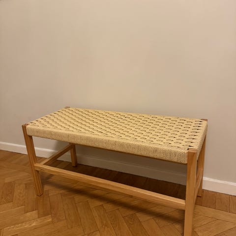 Superfin bänk i ek med flätad sits, Alma, från Åhlens som tyvärr inte kommer till användning längre.