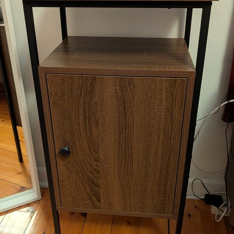 Trendiga svarta sängbord/sideboard av plåt i industristil.