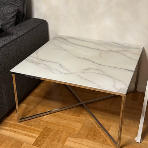 Soffbordet blev använt en kort tid innan vi ställde undan det på grund av småbarn. Bordet har glasskiva överst och rotting under. Jag hittar inget att anmärka på. Inköpt av oss på Mio.