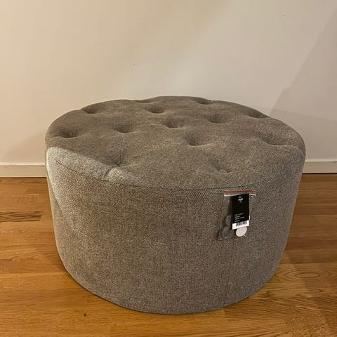 Sittpuff 80cm pikerad i beige tyg. Fint skick.