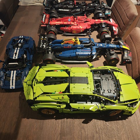 LEGO Technic Formel 1 Racer byggsats med detaljerad design och rörliga delar. Setet innehåller flera instruktionsböcker och delar för att bygga en realistisk Formel 1-bil. Passar för teknikinriktade byggentusiaster.