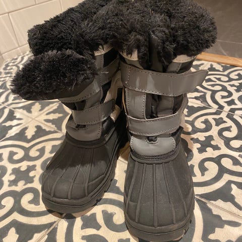Helt oanvända varma och vattentäta vinterstövlar, juniorstorlek 35. De är något för små för min son så han har bara provat dem inomhus en gång. Vi var lite för snabba att göra oss av med kartong och etikett.
