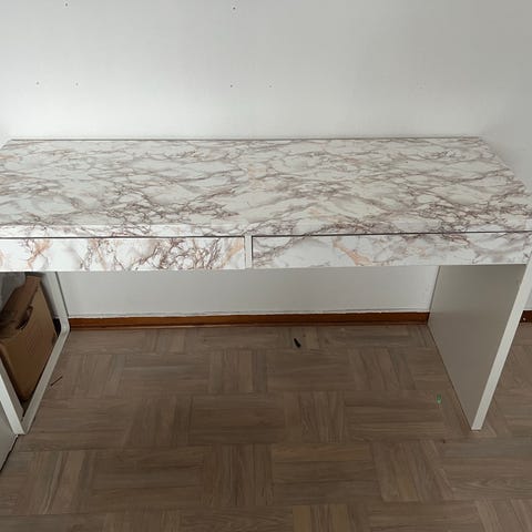 Vit sminkbord bredd 130cm djup45cm höjd 145cm