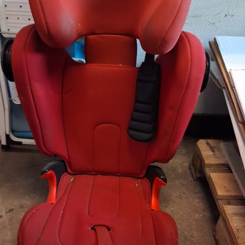 Britax Römer Bältesstol. Produkten är avsedd som bilbarnstol för barn och används för att ge stöd och säkerhet vid användning av bilbälte. Några år gammal men fungerar. Bortskänkes mot avhämtning