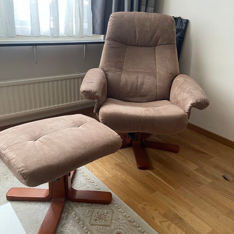 Bekväm fåtölj med fotpall –(kan levereras