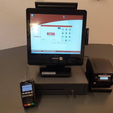 Kassan är utrustad med betalknappar för kontant, kort, presentkort och Swish.