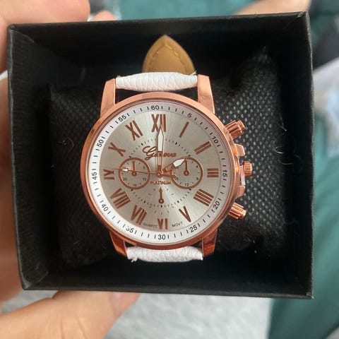 En ny och oanvänd klocka från Geneva. Man knyter klockan runt handleden. Möjligtvis behövs nytt batteri. Väldigt fin och bra kvalitet.