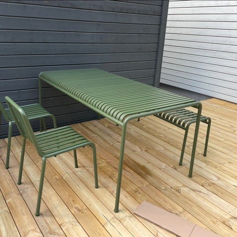 Handflätad matstol i Classic Grey, konstrotting av polyeten med en kraftig stommen av aluminium.