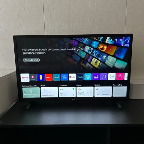 Philips smart TV, Har HDMI, USB m.fl uttag . Utrustad för nätverksanslutning via Wifi el. Direkanslutning. Fötter finns.