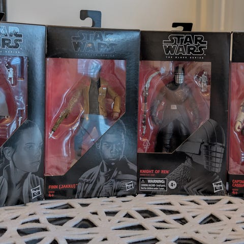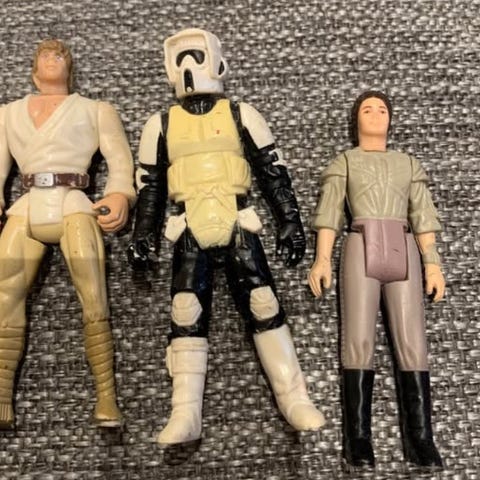 Star Wars actionfigurer och fordon set inklusive olika karaktärer och rymdskepp. Setet innehåller flera figurer och modeller med detaljerad design i plastmaterial.