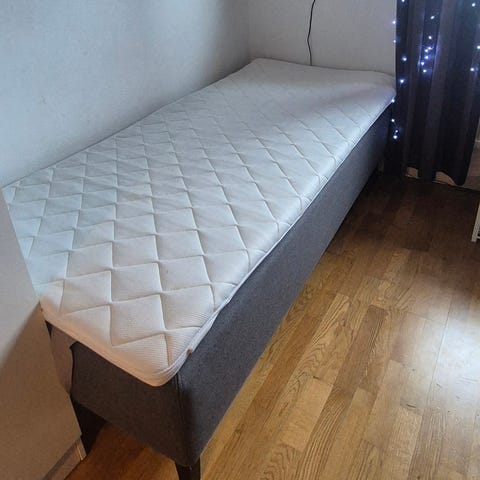 90 säng jysk inklusive gavel. Ljusgrå.