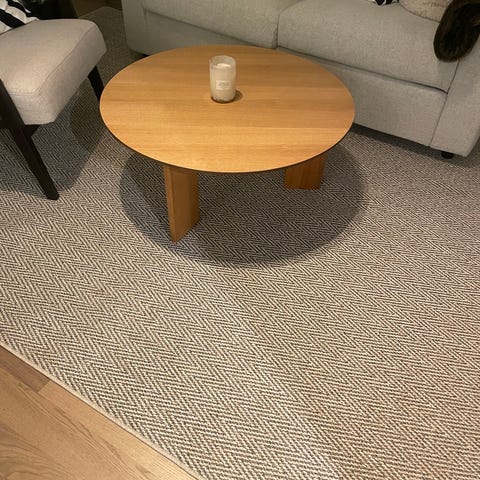 IKEA matta i beige färg. Textilmaterial med enkel design, lämplig för olika rum och inredningsstilar.