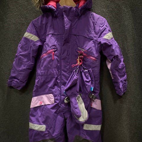 Olivgrön overall från Didriksons, storlek 120. Lagade knän. Sliten nertill vid hälarna, annars bra skick. Finns i Älta.