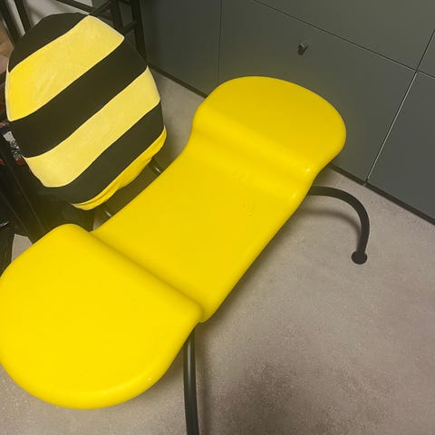 IKEA barnfåtölj i vitt med en avtagbar röd dyna. Fåtöljen har en rund bas och en halvkupolformad rygg med ett överdrag som kan användas som solskydd eller mysig kupol. Passar för barn och kan användas både inomhus som en bekväm sittplats.