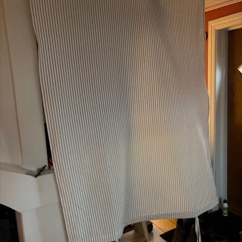 2 st, Åhléns Home gardin med randigt mönster i vitt och blått. Gardinen är avsedd för fönster och har en längd som visas på bilderna. Material och exakta mått är ej angivna.