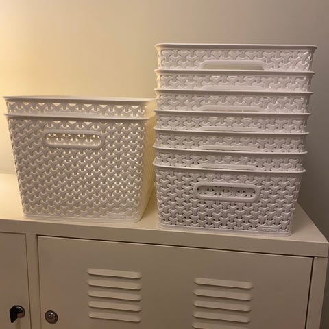 Rusta Pro och Large förvaringslådor tillverkade i kartong. Lådorna är avsedda för förvaring och organisering och kommer i olika storlekar. Produkten är lämplig för att packa och transportera föremål.