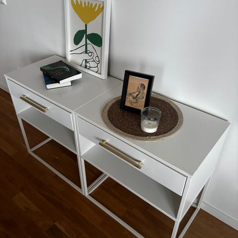 Jättefint nattduksbord VIKHAMMER säljes. Använd, men i väldigt fint skick. Mått finns som bild. Säljes pga flytt.