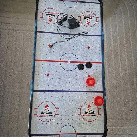 Airhockeyspel med scoreboard och målskytte